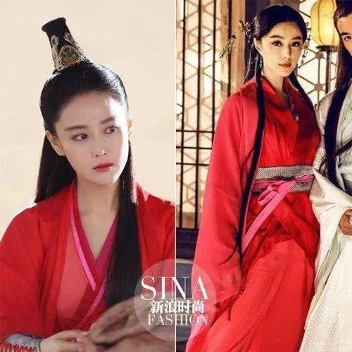 古装红色衣服造型,感觉张馨予脸部的轮廓会比范爷的轮廓大点