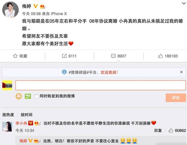 而这次事件里李小冉提到的“某演员”梅婷也发声了,为李小冉正名,获得了很多网友的赞许。李小冉担了多年的“小三”污名,也总算在被洗刷了。毕竟,梅婷才是这个事件最有说服力的发言人。相信小冉和梅婷也因为这个事情获得了更亲密的友谊。