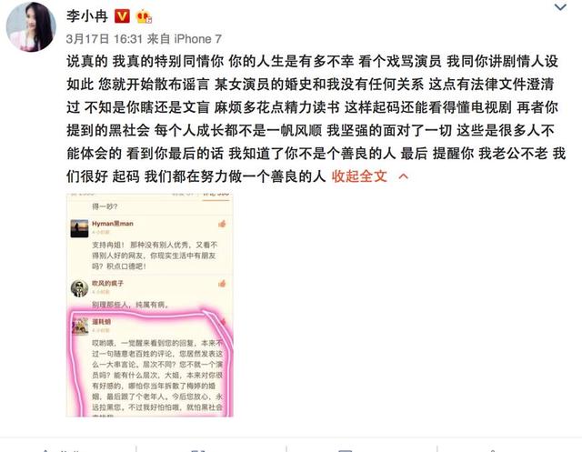 李小冉发文怼网友被批心理素质差,是公众人物就应该忍气吞声?