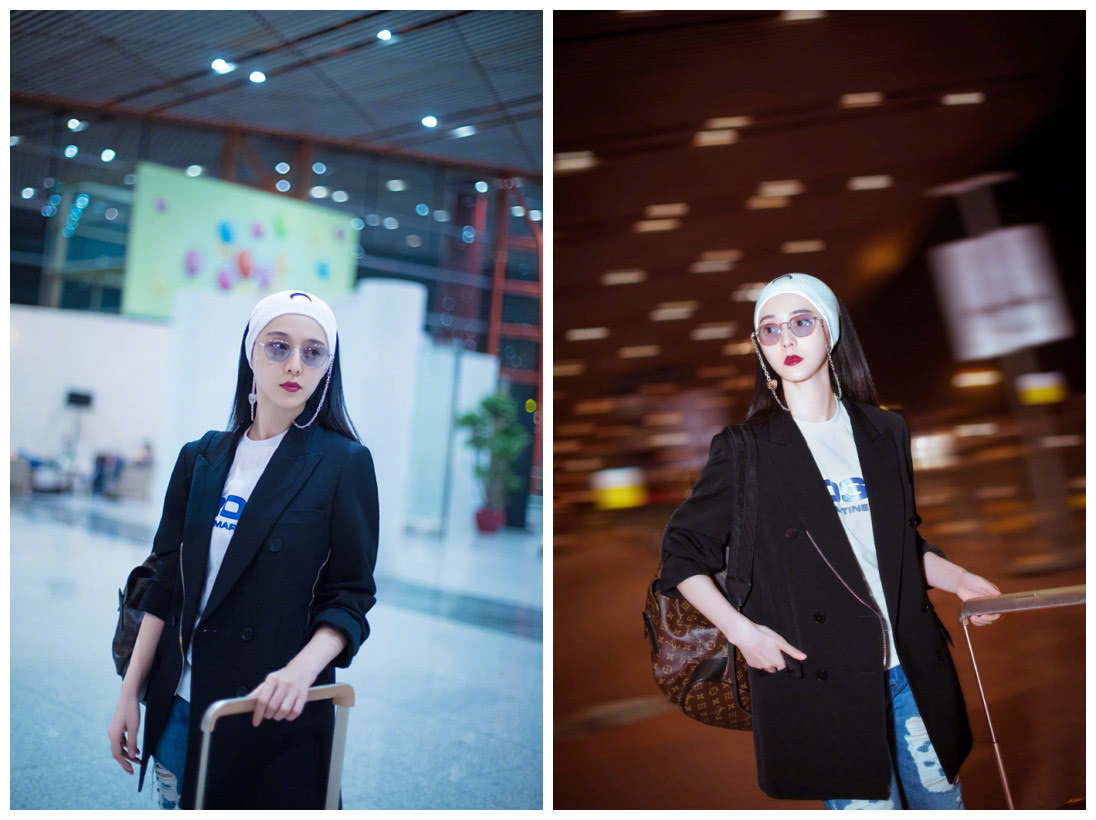 看她穿着小西装,内搭白T恤,穿着破洞牛仔裤,当然,重点是头上的东西,这可不是帽子,而是发带,不知道范冰冰这是不是用来定型用的,还是仅仅为了与众不同,反正是蛮有个性的。