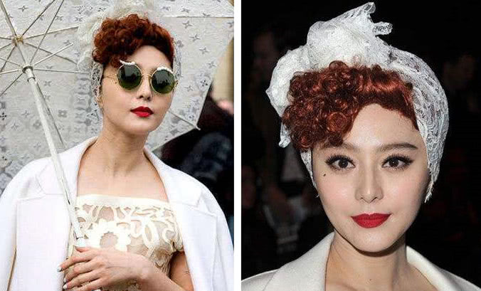 还有这个复古的,上海风造型,头上戴着白色的丝巾什么的,此刻的范冰冰完全是一个优雅女士的模样,感觉气质蛮好的。
