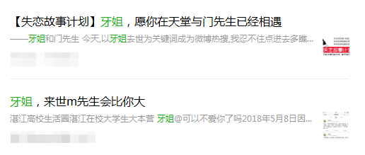 反正她凄美的爱情故事又被大家找了出来悼念,“牙姐去找她的小孩了,这次小孩大你两岁”。