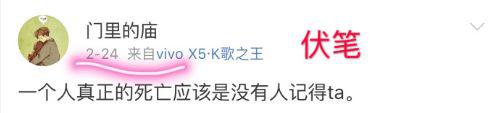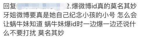 蜗牛妹发的悼念牙姐微博下,有个顶着杨幂头像的人上来评论“什么玩意走了”?蜗牛妹趁势回复:邻居姐姐。
